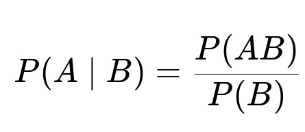 You will see that p_AB = 1/12, p_B = 5/9, and p_A_given_B = 3/20, confirming the theoretical result.