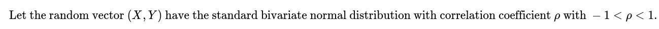 The condition -1 < ρ < 1 ensures that √(1−ρ²) is strictly positive, so we can construct W = ρX + √(1−ρ²}Z in a non-degenerate way. If ρ = 1 or ρ = -1, the bivariate normal distribution collapses because X and Y are perfectly (or perfectly negatively) correlated. In that case, Y is just ±X without additional noise, leading to a degenerate distribution on a line.
