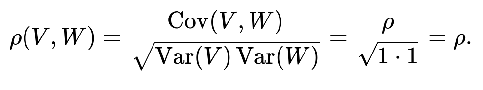 We also verify that the covariance between V and W yields a correlation of ρ.