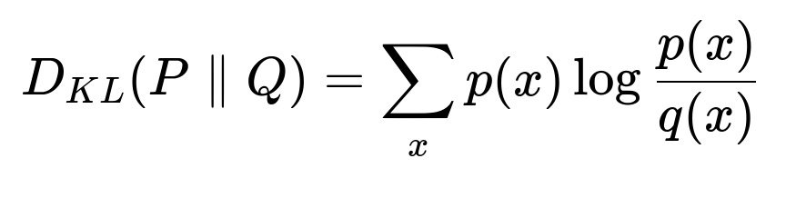 In the above expression, p(x) can represent the probability distribution of a feature during training, while q(x) represents the probability distribution of the same feature on newly incoming data. A significant divergence indicates that the feature distribution has shifted. Similarly, for continuous distributions, integral or density-based forms would be used. While each measure has its nuances, their general goal is to detect distribution changes over time.