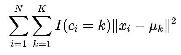 K-means clustering is often expressed through the objective of minimizing the sum of squared distances between data points and their assigned cluster centers. The classical K-means cost function can be shown as
