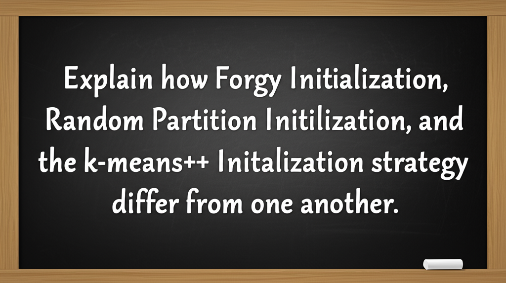 ML Interview Q Series: Explain how Forgy Initialization, Random Partition Initialization, and the k-means++ Initialization strategy differ from one another.