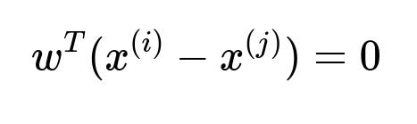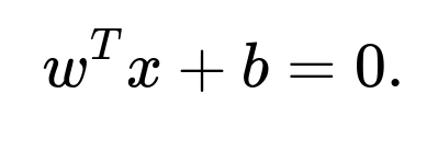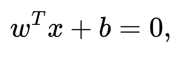 # Then b can be computed so that w^T x + b = 0 holds for all x in X