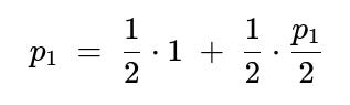 p1 = 1/2 + (1/4)p1 (3/4)p1 = 1/2 p1 = 2/3