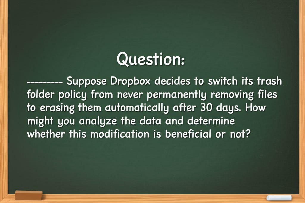 ML Interview Q Series: How would you analyze data to assess the impact of auto-deleting Dropbox trash files after 30 days?