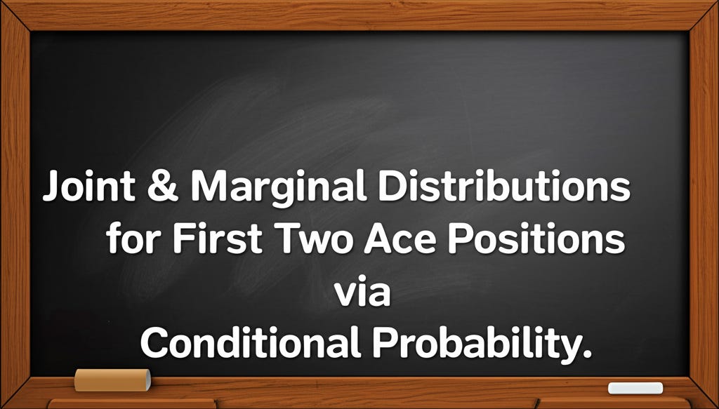 ML Interview Q Series: Joint & Marginal Distributions for First Two Ace Positions via Conditional Probability.