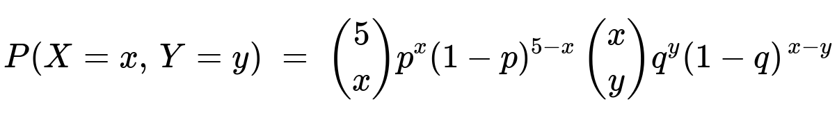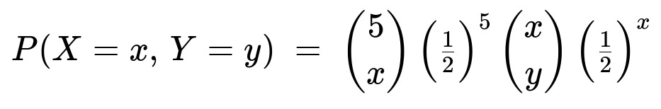 ;=; \bigl[\binom{5}{x},\bigl(\tfrac12\bigr)^5 \bigr] ;\times; \bigl[\binom{x}{y},\bigl(\tfrac12\bigr)^x \bigr]$$