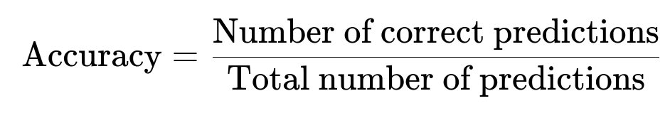 This expression can help anchor the concept that one must have predicted labels and the corresponding ground truths to evaluate the fraction of correct outcomes. Once a baseline accuracy is established, daily or hourly accuracy can be compared to ensure the model is not drifting from its expected performance.