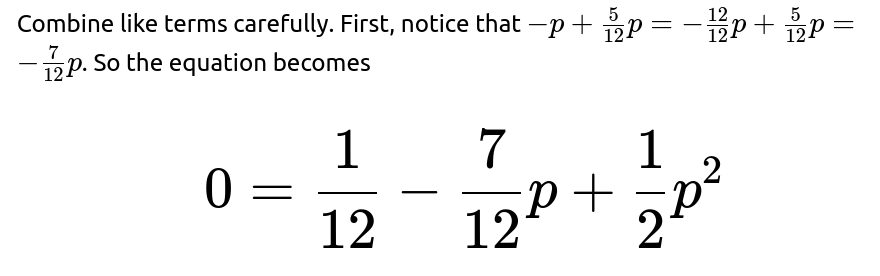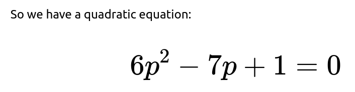 # Coefficients for 6p^2 - 7p + 1 = 0