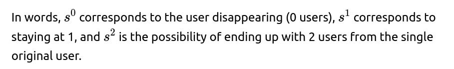 We are given that from a single user, the probability distribution for the number of users on the next day is: