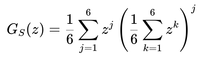 G_S(z) = Σ_{j=1 to 6} p_j z^j [Σ_{k=1 to 6} q_k z^k]^j.