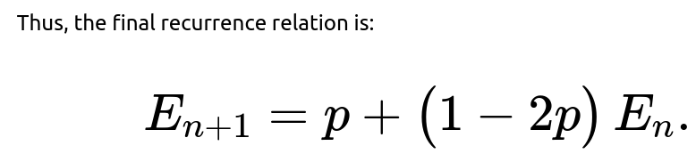 Eⱼ₊₁ = p + (1 - 2p) Eⱼ.