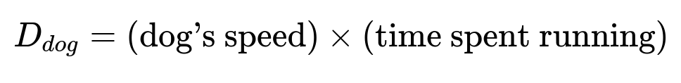 If they began at different distances from each other, you would calculate how long the man takes to reach the final destination from his new starting point. The dog’s total distance would again be its speed multiplied by that total travel time, as long as the dog runs continuously at a constant speed.