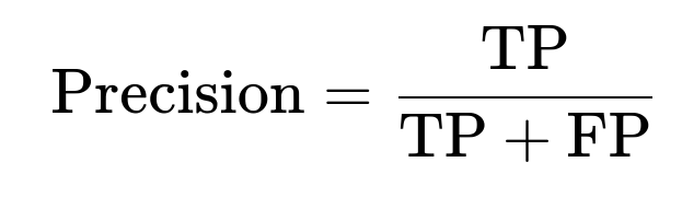 Precision measures among all predicted positives, what fraction actually belong to the positive class. If we denote TP as true positives and FP as false positives: