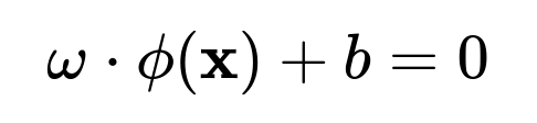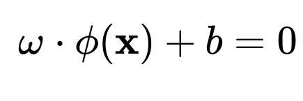 where (\omega) is the normal to the hyperplane in that high-dimensional space, and (b) is the bias term.