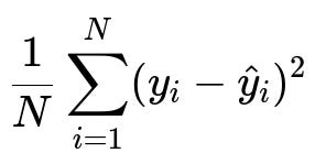 where y_i is the true target for the i-th data point, and \hat{y}_i is the model’s prediction for the same data point. N is the total number of data points in the training set. This formula represents the average of the squared difference between predicted and actual values. Minimizing this encourages the model to produce predictions that are close to the actual data.