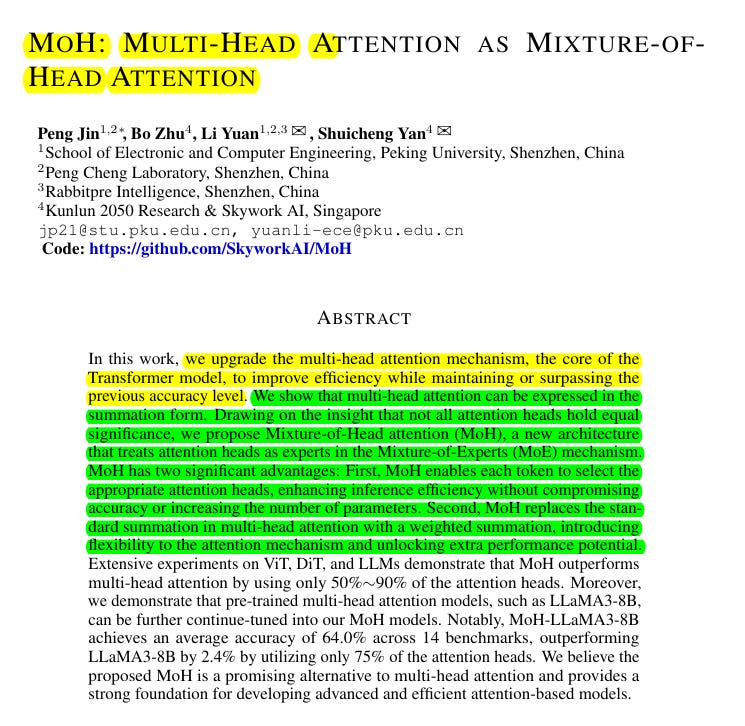• Introduces Mixture-of-Head attention (MoH)