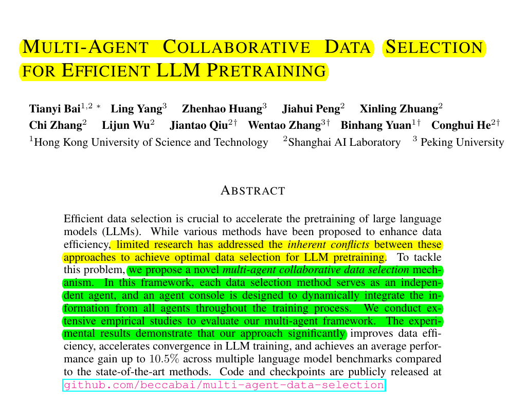 • Multi-agent collaborative data selection framework