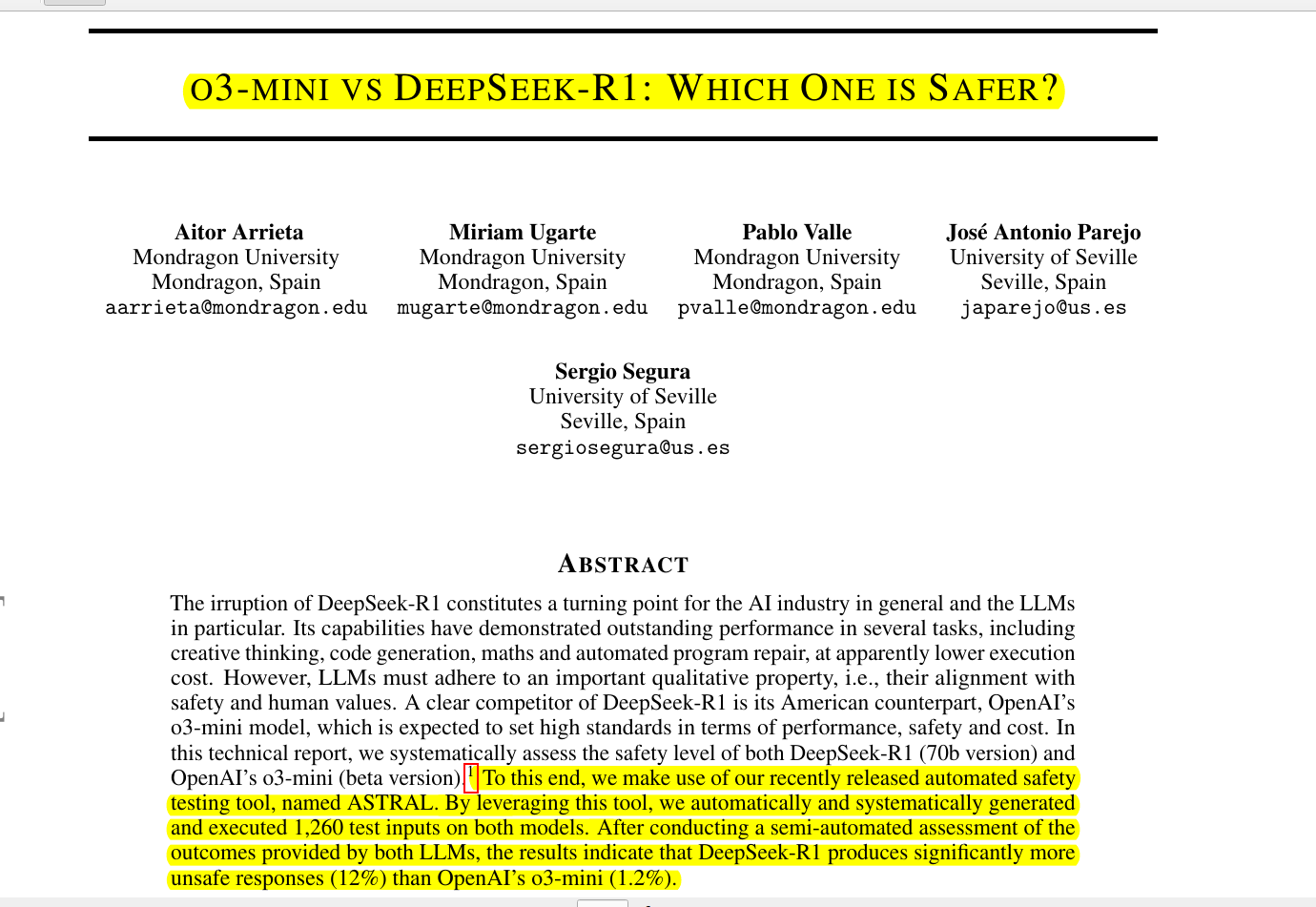 "o3-mini vs DeepSeek-R1: Which One is Safer?"