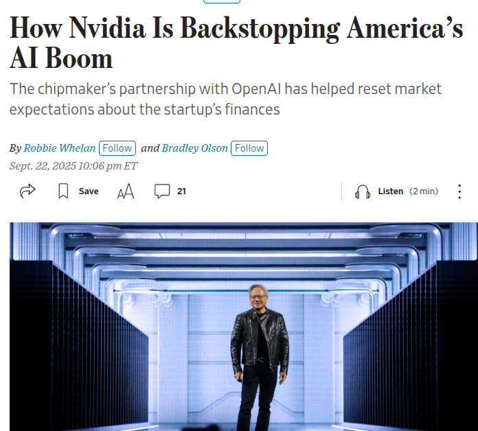 💰 “How Nvidia Is Backstopping America’s AI Boom” - A great WSJ article.
