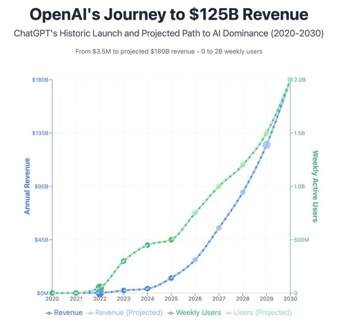 The assistant must deliver low latency speech, clean turn taking, useful visual detection, and lean memory, all under tight cost and power. OpenAI’s projected path to $125B Annuanl Recurring Revenue.