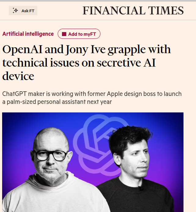 🤖 OpenAI and Jony Ive are building a palm sized, screenless AI assistant