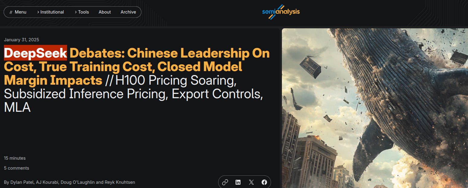 📚 Semianalysis Pulished Detailed Report On DeepSeek Debates: Chinese Leadership On Cost & True Training Cost