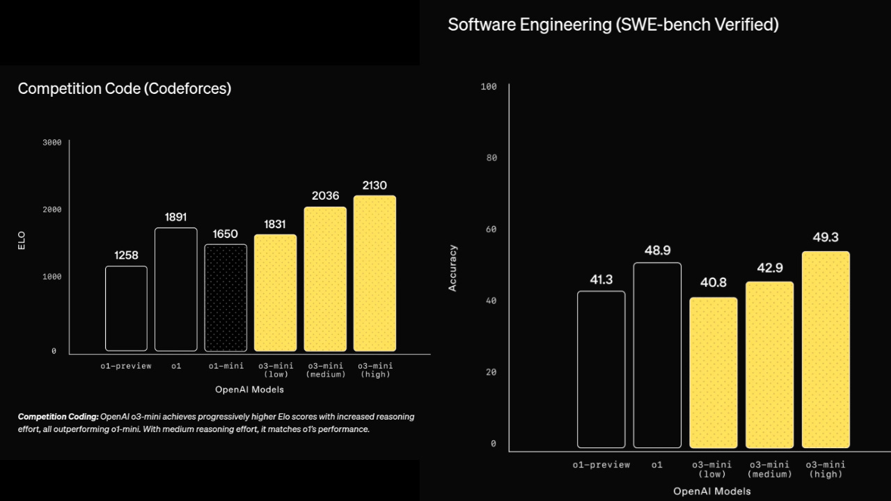 → o3-mini will replace o1-mini in the model picker, providing higher rate limits and lower latency, making it ideal for coding, STEM, and logical problem-solving.