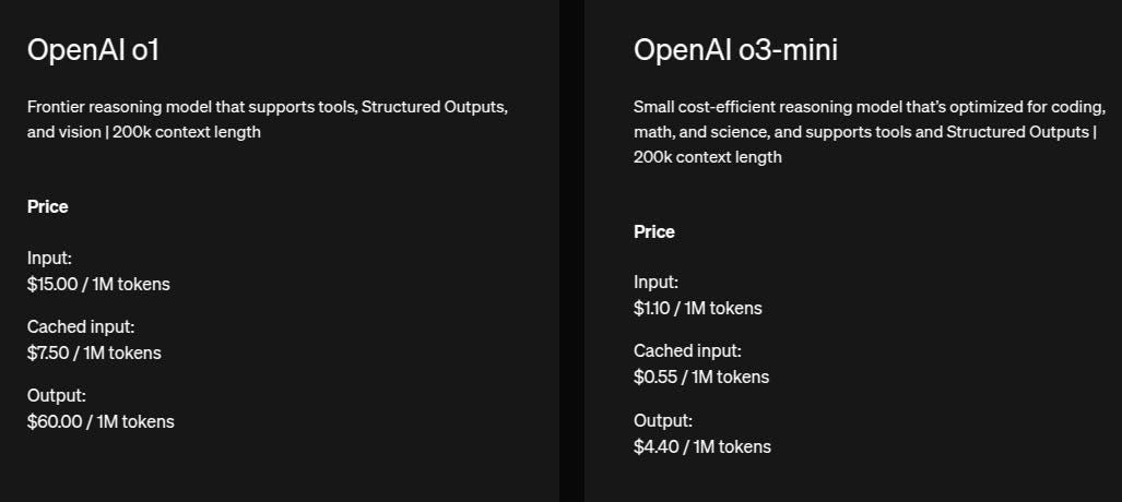 One of o3-mini’s most notable advantages is its cost efficiency: It’s 63% cheaper than OpenAI o1-mini and 93% cheaper than the full o1 model, priced at $1.10/$4.40 per million tokens in/out (with a 50% cache discount).