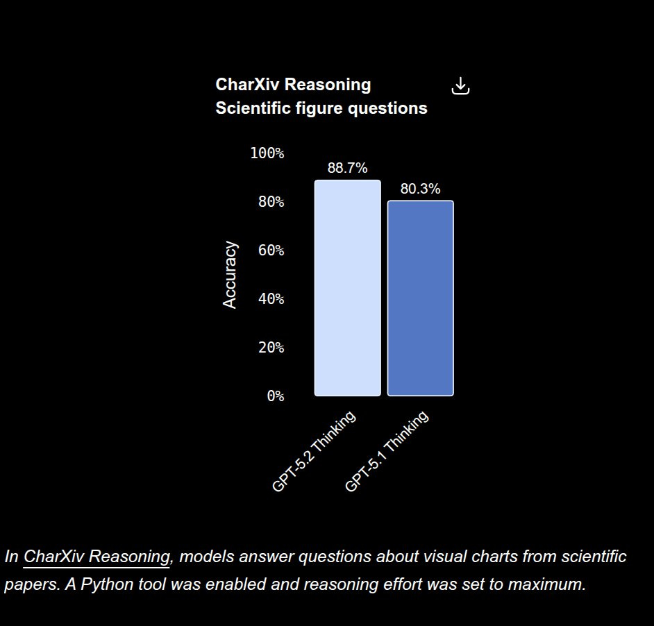 The gap here means GPT-5.2 is noticeably better at correctly interpreting information-dense charts, which is exactly the kind of visual reasoning that earlier multimodal models often struggled with.