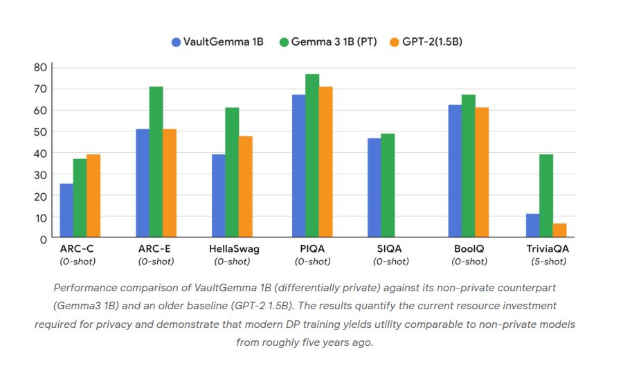 ⚖️ GoogleResearch introduced VaultGemma 1B, The Largest and Most Capable Open Model (1B-parameters) Trained from Scratch with Differential Privacy