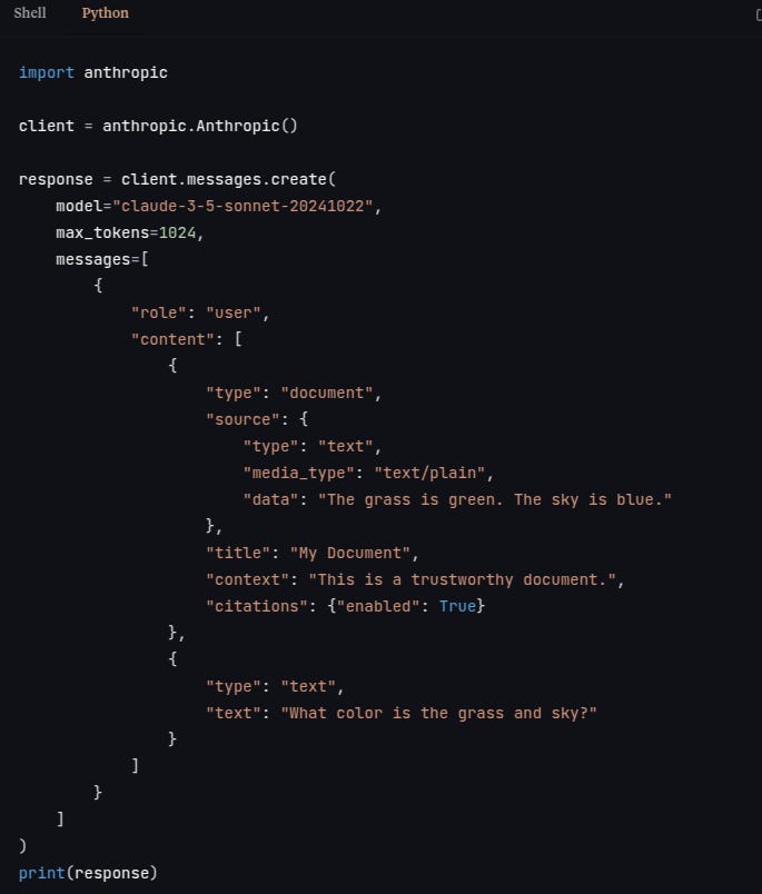 This is way better than trying to hack citations with just prompts. Citations is more reliable, gives you better quality references, and can even save you tokens because the cited text doesn't count towards your output token usage.