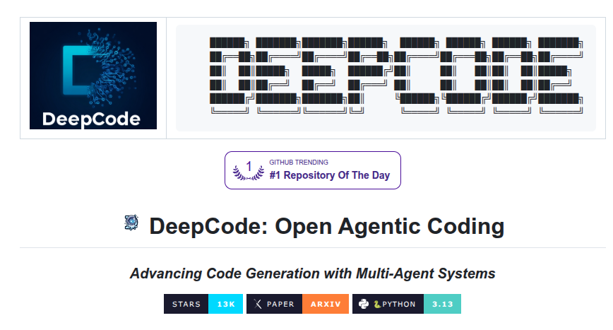 👨🔧 Github Repo - DeepCode is an open-source multi-agent system that converts research papers and natural language descriptions into code.