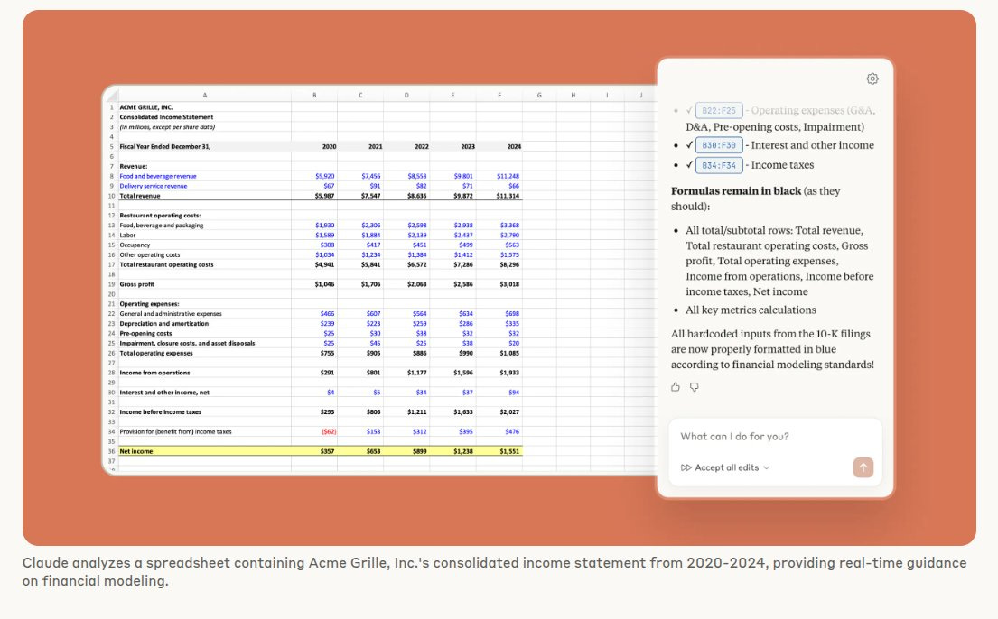 - 🧮 Anthropic expanded Claude for Financial Services with a beta Excel add‑in