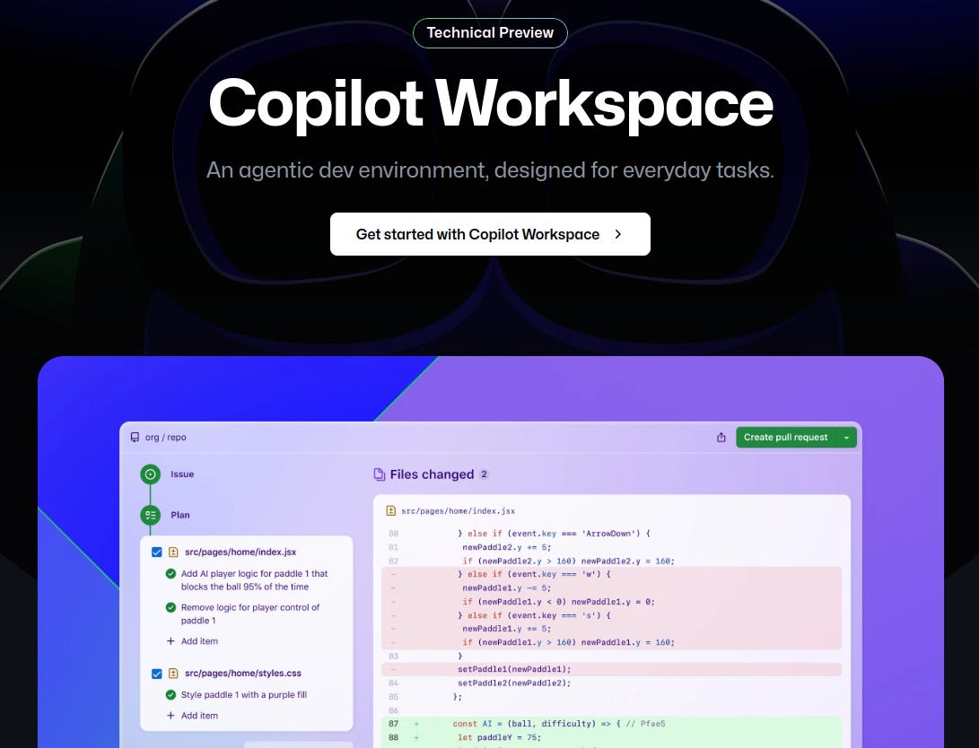 → Copilot Workspace is designed for everyday dev tasks like addressing issues, iterating on PRs, and bootstrapping projects, all driven by natural language commands. The "plan agent" converts user intent into an actionable plan and implements it.