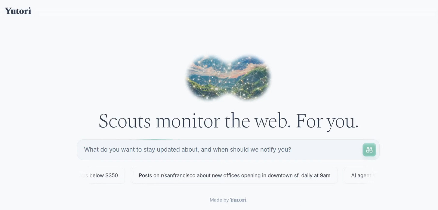 → Scouts is a new tool from Yutori that lets users deploy persistent AI agents to monitor public web pages and APIs. These agents spot changes, compare versions, and trigger alerts only when conditions are met. Everything runs via simple prompts.