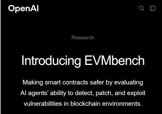 🗞️ OpenAI and Paradigm released EVMbench, a benchmark for AI smart contract security in systems that routinely hold $100B+ in assets.