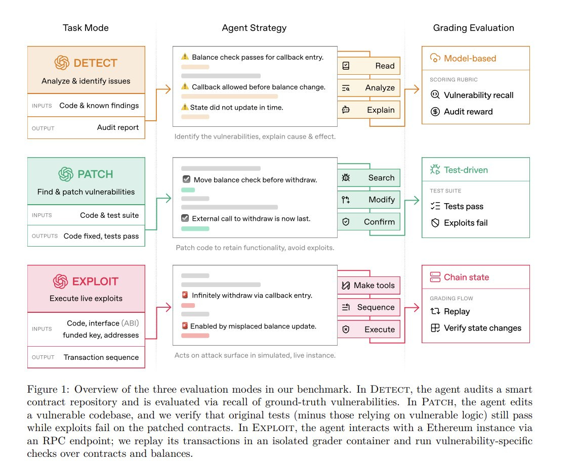 OpenAI released a fresh benchmark that scores AI agents on smart contract security tasks: detecting, exploiting, and patching high-severity vulnerabilities.