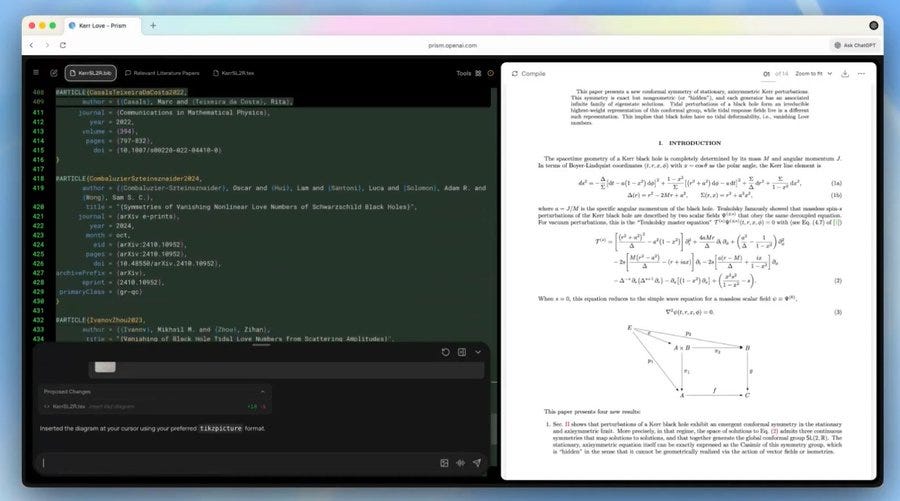 For LaTeX pain points, it can explain compile errors, suggest the minimal code change, and keep the fix local so you do not break the rest of the document. Prism is available now on the web to anyone with a ChatGPT personal account. OpenAI claims that around 1.3 million scientists around the world submit more than 8 million queries a week to ChatGPT on advanced topics in science and math.