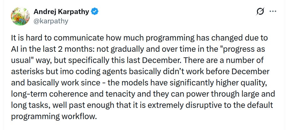 🗞️ New banger from Andrej Karpathy about how rapidly agents are improving
