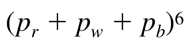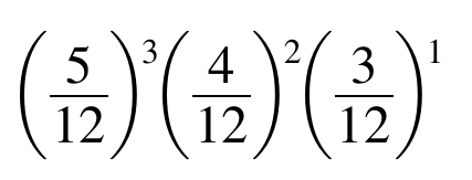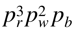 The probability of choosing any red ball is 5 /12. Then the probability of choosing 3 red balls is (5 /12)^3. Similarly, the probability of choosing 2 white balls is (4/ 12)^ 2, and of choosing 1 blue ball, (3 12)^1.