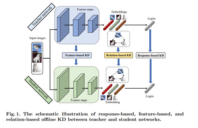 Relation-based distillation: This approach focuses on transferring the relationships between different samples or features as learned by the teacher model.