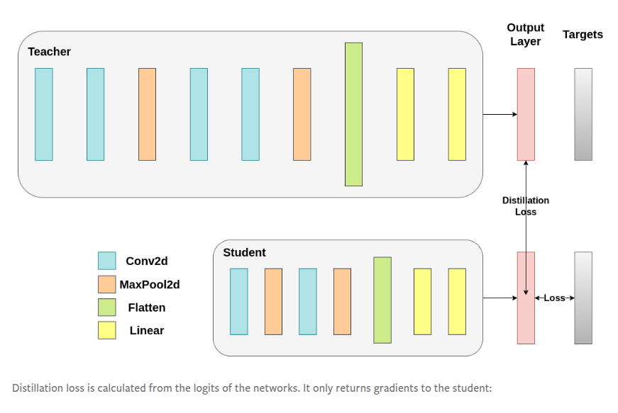 Model Architecture Modification: PyTorch enables easy extraction of hidden representations from both teacher and student models. This is accomplished by modifying model classes to expose intermediate activations, which can then be used for feature-based distillation. The framework allows developers to: