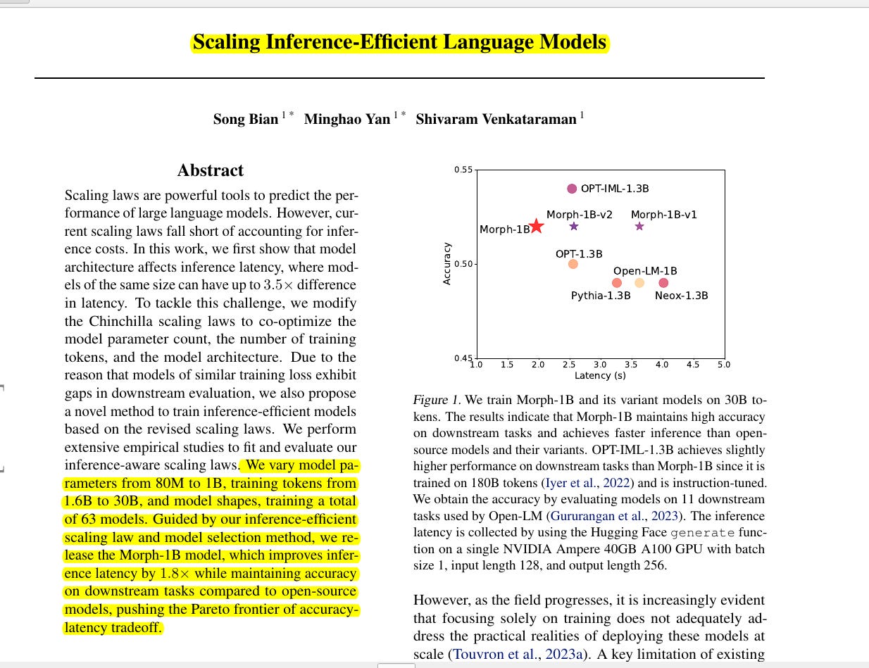 → Morph-1B model, guided by these laws, achieves 1.8× faster inference than similar open-source models while maintaining accuracy.