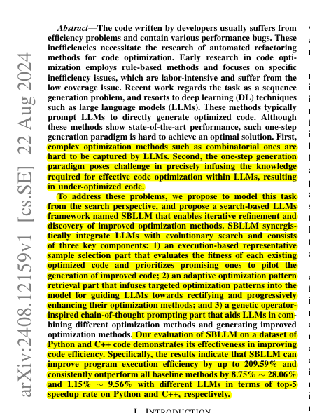 • SBLLM: A search-based LLM framework for iterative code optimization