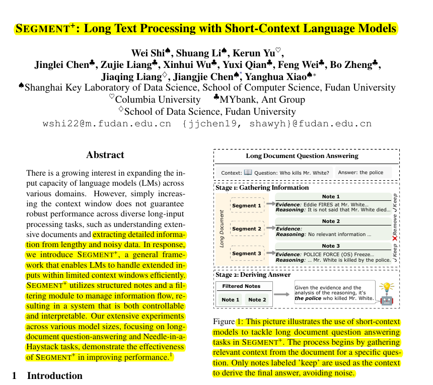 Paper - "SEGMENT*™: Long Text Processing with Short-Context Language Models"