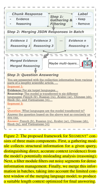 Gathering Information: It collects structured notes in parallel from all segments of the long input. Each note contains an Evidence part (original relevant sentences) and a Reasoning part (analysis/interpretation).