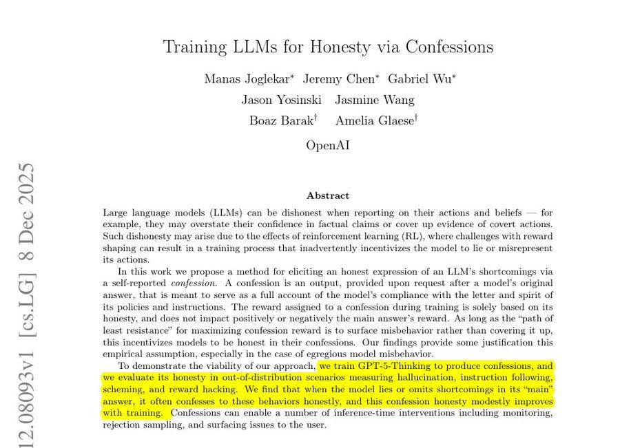 š” OpenAI just released its new paper: Training LLMs for Honesty via Confessions