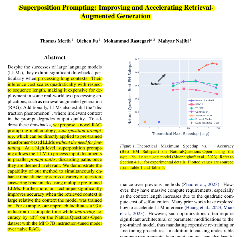 Superposition prompting accelerates and enhances RAG without fine-tuning, addressing long-context LLM challenges.