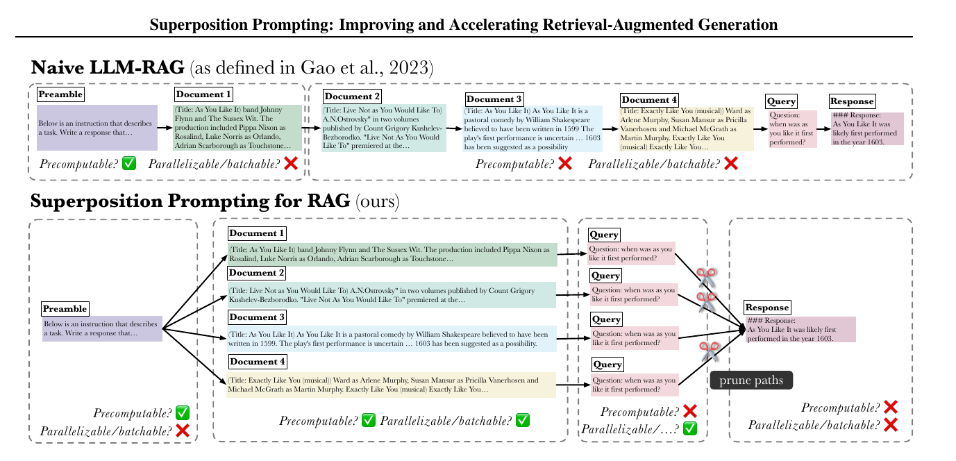 Superposition Prompting: Improving and Accelerating RetrievalAugmented Generation